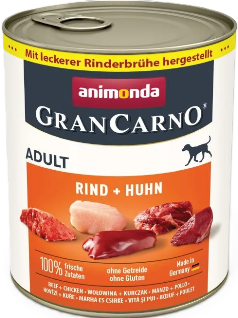 GranCarno konservai su jautiena ir vištiena suaugusiems šunims Gardus ir ypač sotus gyvūninės kilmės ingredientų derinys: jautiena ir vištiena....