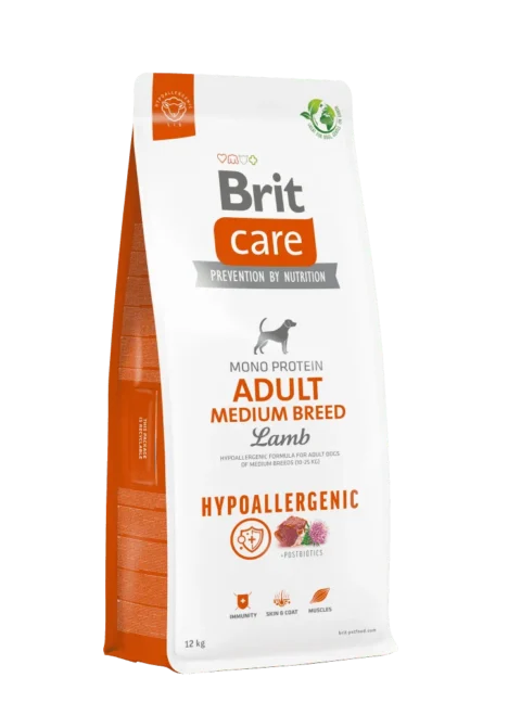 Brit Care Adult Medium Breed with Lamb sausas maistas šunims. Hipoalerginės linijos receptas su ėriena ir ryžiais skirtas suaugusiems...