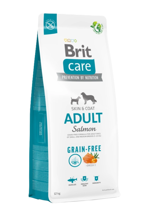Brit Care Adult with Salmon Grain Free sausas masitas šunims. Begrūdės linijos receptas su lašiša skirtas mažų arba vidutinių...