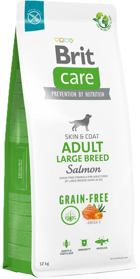 Brit Care Adult Large Breed with Salmon Grain Free sausas maistas šunims. Begrūdės linijos receptas su lašiša ir bulvėmis...