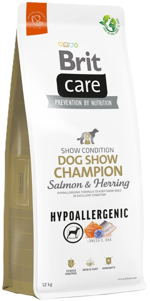 Brit Care Dog Show Champion with Salmon and Herring sausas maistas šunims. Hipoalerginės linijos receptas su lašiša ir silke...