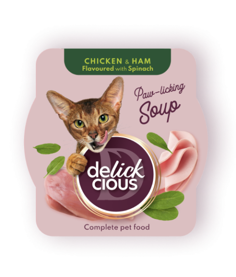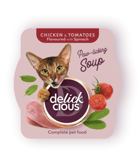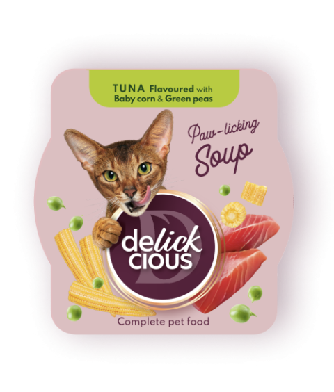 Delick Cious Sriuba Tuno sriuba su mini kukurūzais ir žirneliais turtingos tekstūros, sultingas tunas ir maistingos daržovės – dabar katėms...