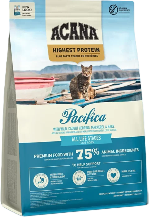 Acana Pacifica visų veislių, visų amžiaus grupių katėms, receptas, turintis didžiausią gyvūninių baltymų kiekį, visiškai patenkins jūsų katę savo...