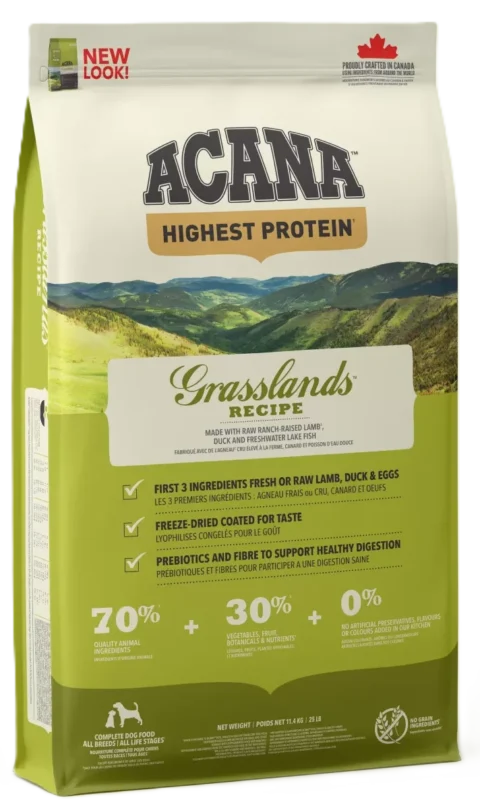 Acana Grassland visų veislių bei amžiaus grupių šunims, recepte yra net 70% kokybiškų gyvūninių ingredientų, tokių kaip ėriena, antiena,...