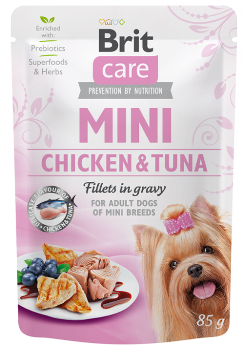 BRIT CARE Mini Chicken&Tuna fillets in gravy konservai šunims su vištiena ir tunu. Filė gabaliukai švelniame padaže yra tobulas...