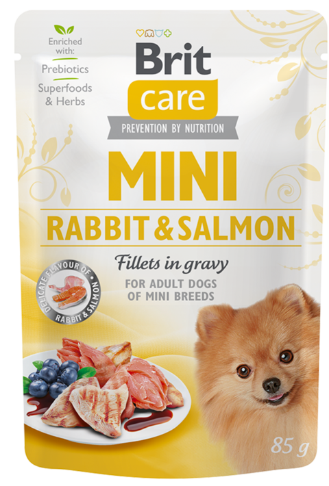 BRIT CARE Mini Rabbit&Salmon fillets in gravy konservai šunims su triušiena ir lašiša. Filė gabaliukai švelniame padaže yra tobulas...