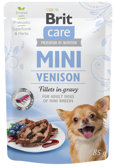 Brit care Mini Venison fillets in gravy konservai šunims su elniena. Filė gabaliukai švelniame padaže yra tobulas papildas prie...