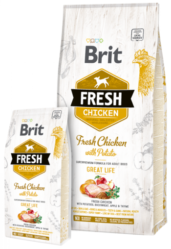 Brit Fresh Chicken with Potato Adult sausas šunims