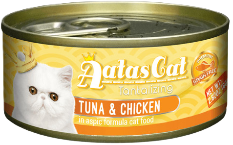 Aatas visavertis pašaras katėms, su tunu ir vištiena drebučiuose
