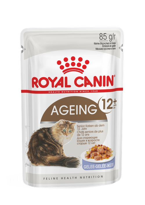 Visavertis senjorų kačių ėdalas virš 12 metų amžiaus (ploni griežinėliai drebučiuose).