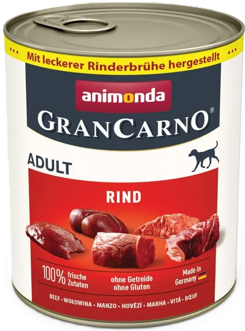 GranCarno konservai su jautiena suaugusiems šunims subalansuotas GranCarno Adult Beef suteikia šunims visas būtinas maistines medžiagas, kurių jiems reikia kiekvieną dieną. Šlapias ėdalas žavi šunis matomais, mėsingais gabalėliais ir be grūdų, sojos ar cukraus. Pagaminta iš 100 % šviežių, mėsingų jautienos ingredientų. Puikus šunų maistas suaugusiems keturkojams draugams.