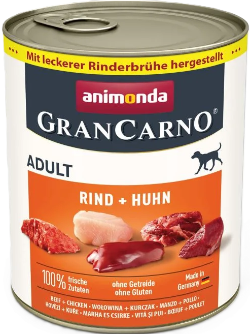 GranCarno konservai su jautiena ir vištiena suaugusiems šunims Gardus ir ypač sotus gyvūninės kilmės ingredientų derinys: jautiena ir vištiena. Sukurtas suaugusiems šunims ir atitinka jų mitybos poreikius. Tai aprūpina jūsų šunį visomis būtinomis maistinėmis medžiagomis, kurių jam reikia kiekvieną dieną.