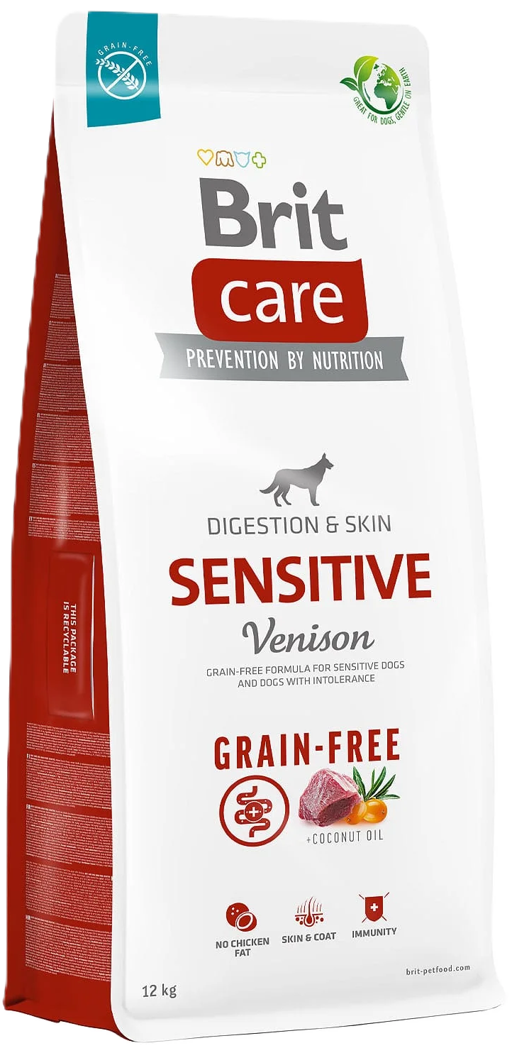 Brit care Sensitive Venison. Visavertis pašaras šunims. Begrūdės linijos receptas su elniena skirtas šunims, kurie turi maisto netoleravimo problemų ir jautrų virškinimą. Aukščiausios kokybės begrūdis pašaras yra specialiai sukurtas šunims su jautriu virškinimu ir maisto netoleravimu. Elnienos baltymai sumažina nepalankios reakcijos į maistą riziką, esant jautriam virškinimui ar odos jautrumui. Tikrasis margainis palaiko kepenų funkciją ir padeda atsispirti virškinimo ar odos uždegimams.