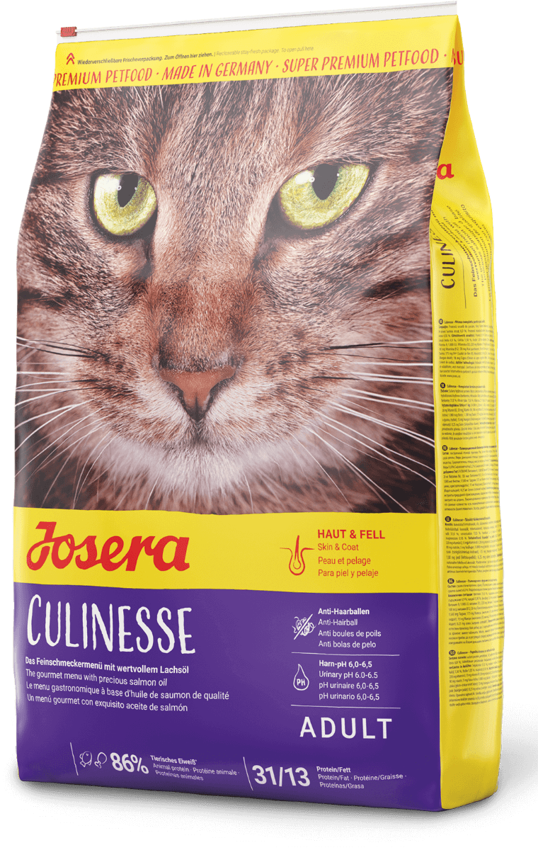 „Josera Culinesse“ su gardžiais lašišų baltymais – tai, ko reikia išrankioms katėms. „Josera Culinesse“ receptas puikiai subalansuotas, tad ėdalas lengvai virškinamas ir ypač skanus.