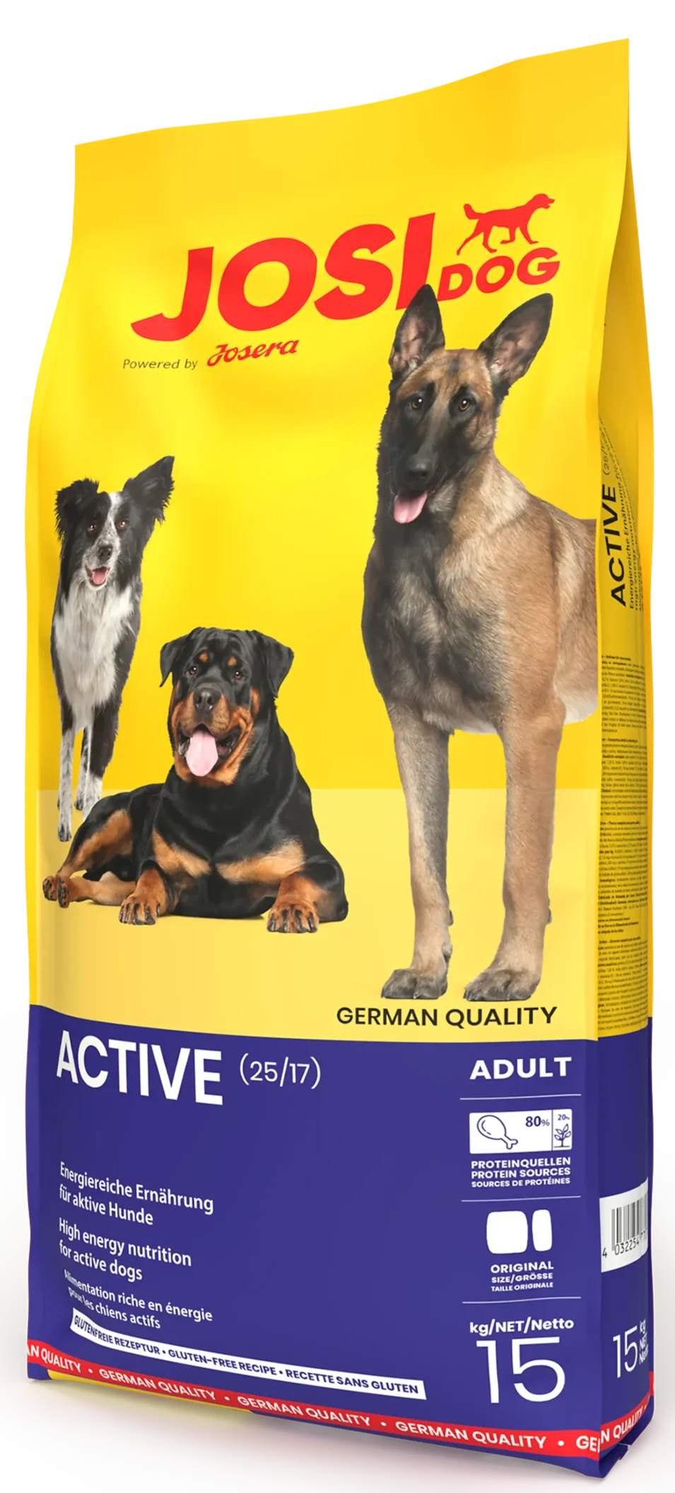 JosiDog Active yra daug energijos turintis ėdalas be glitimo suaugusiems aktyviems šunims. Maistingas ir glitimo neturintis receptas turi papildomos galios visiems šunims, kurie negali stovėti vietoje. Puikus sausas ėdalas keturkojams sportininkams!