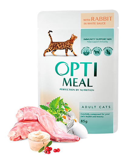 Super Premium klasės konservai suaugusioms katėms su triušiena baltame padaže. Šviežia triušienos mėsa aprūpina katę aukštos kokybės, lengvai virškinamais gyvūninės kilmės baltymais, kurie skatina sveiką virškinimą.