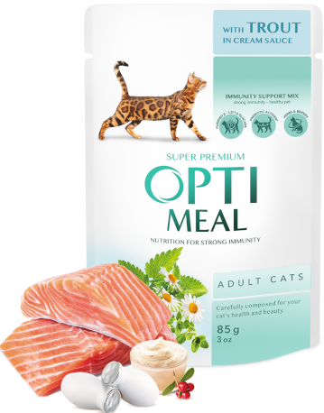 Visavertis konservuotas pašaras suaugusioms katėms su upėtakiu kreminiame padaže. Švelnūs upėtakio gabaliukai pripildo augintinio organizmą lengvai virškinamų baltymų, kurie neapkrauna virškinimo sistemos. Maisto formulė leidžia lengvai išlaikyti tinkamą katės svorį ir apsaugoti ją nuo nutukimo.