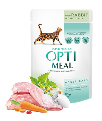 Optimeal konservai su triušiena morkų drebučiuose katėms