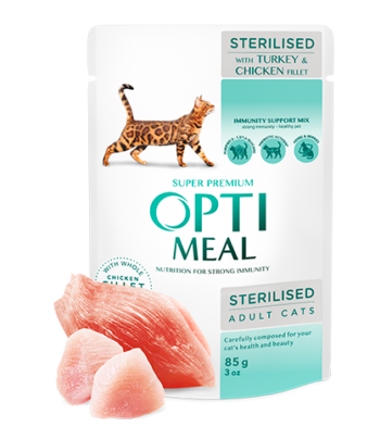Optimeal konservai su kalakutiena ir vištiena sterilizuotoms